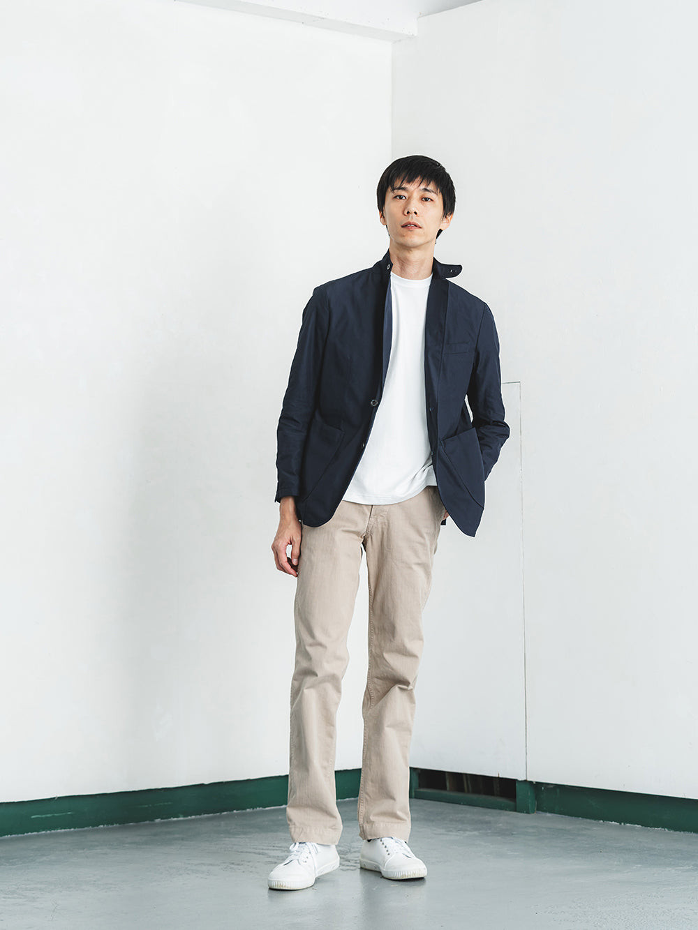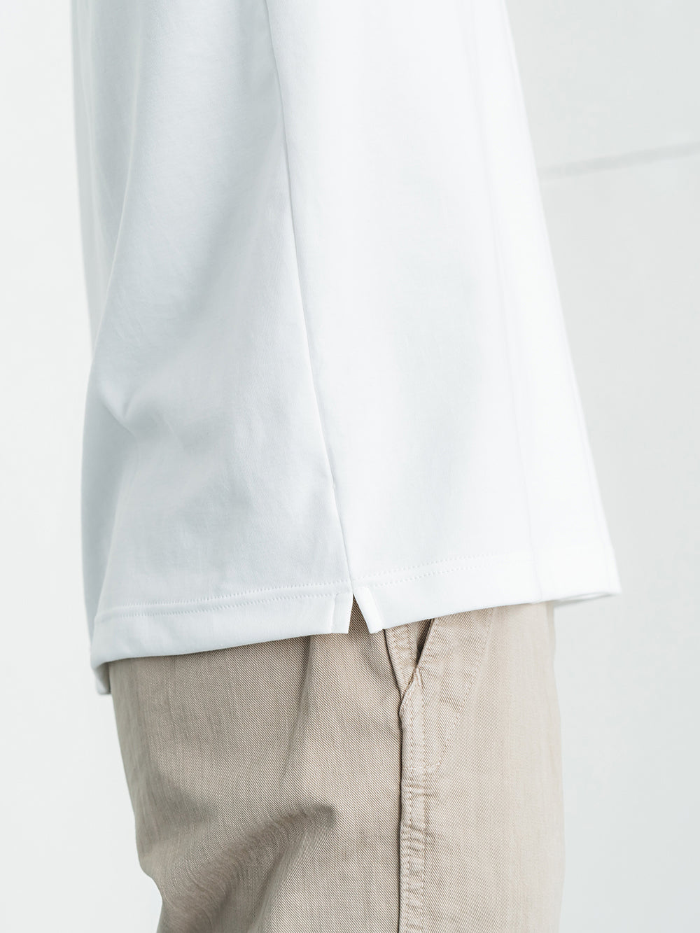 一枚で着てもインナーとしても程よいサイズ感で、幅広いシーンに対応。ジャケットスタイルに馴染むバランスの良いシルエットは、ビジネスカジュアルからオフシーンまで活躍します。汎用性の高い、ワードローブの基本となる一着です。