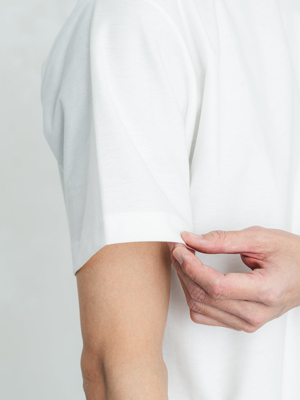コンタクトニットツイルシルバイオは、コンパクト糸をハイゲージで編み上げた独自素材。斜めに凹凸のある生地に、毛羽を取るバイオ加工とシルクのような風合いを出すシルケット加工を施しました。軽やかな着用感ながら、程よいハリ感と肉感があり、透け感やボディラインをカバー。安心して着られる一枚です。