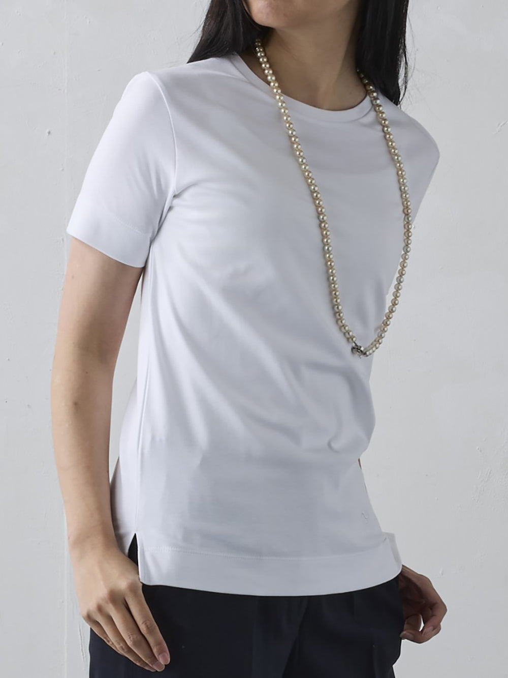 最高級のコットン「スビンプラチナム」を使用。ジャケットのインナーとして設計された細身シルエット。