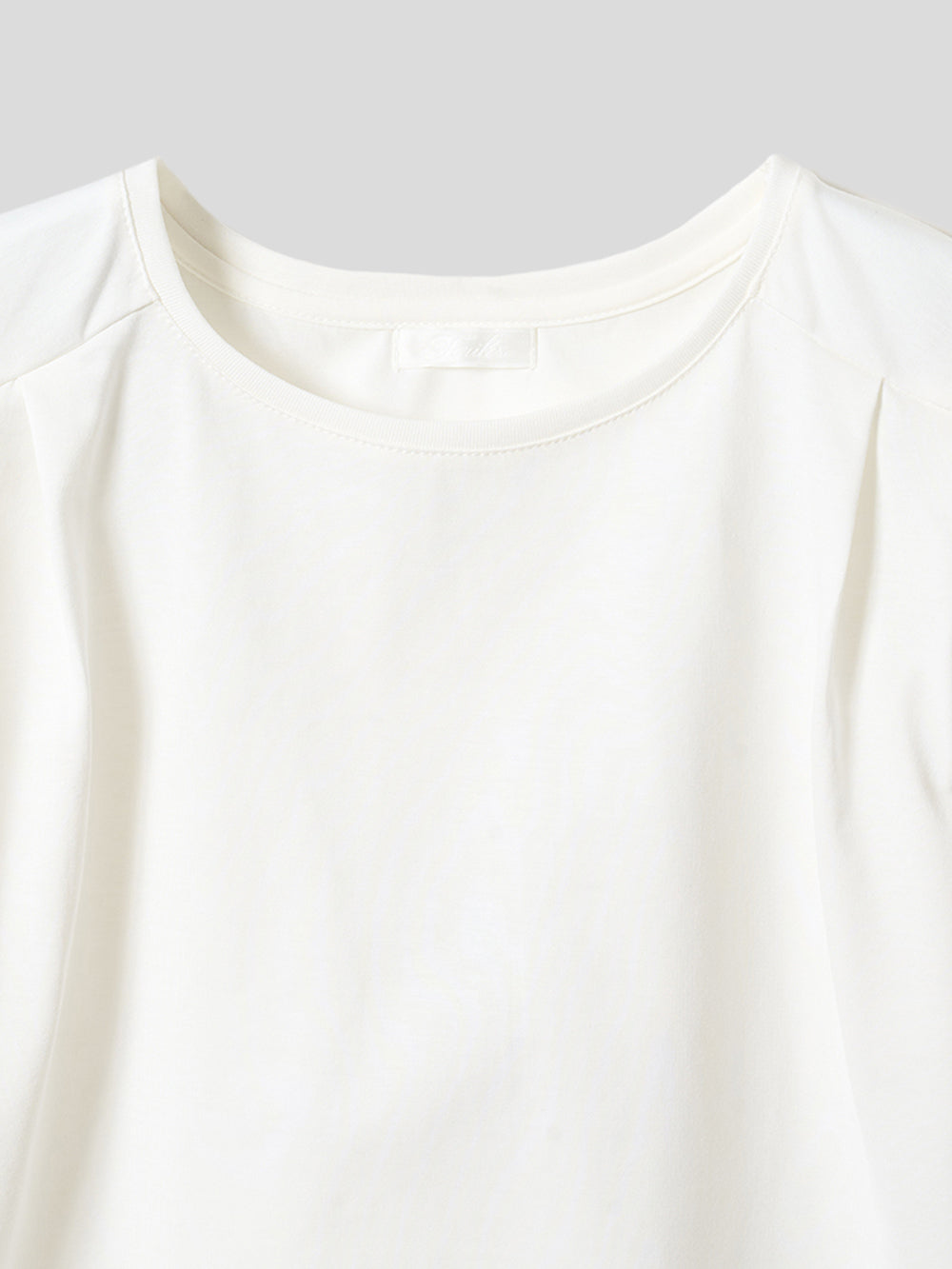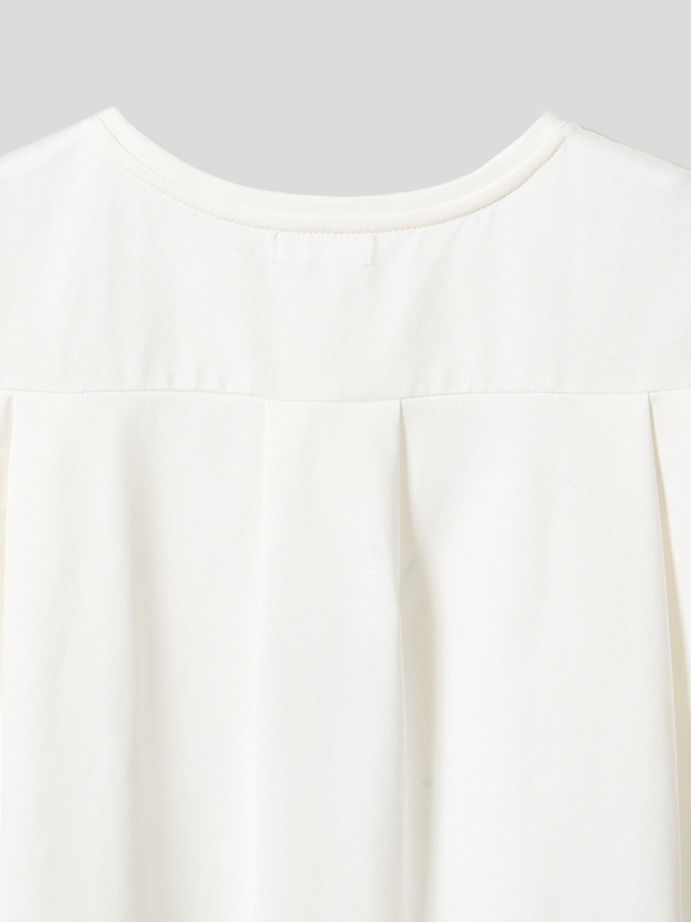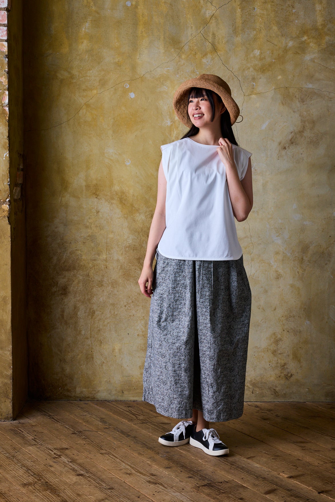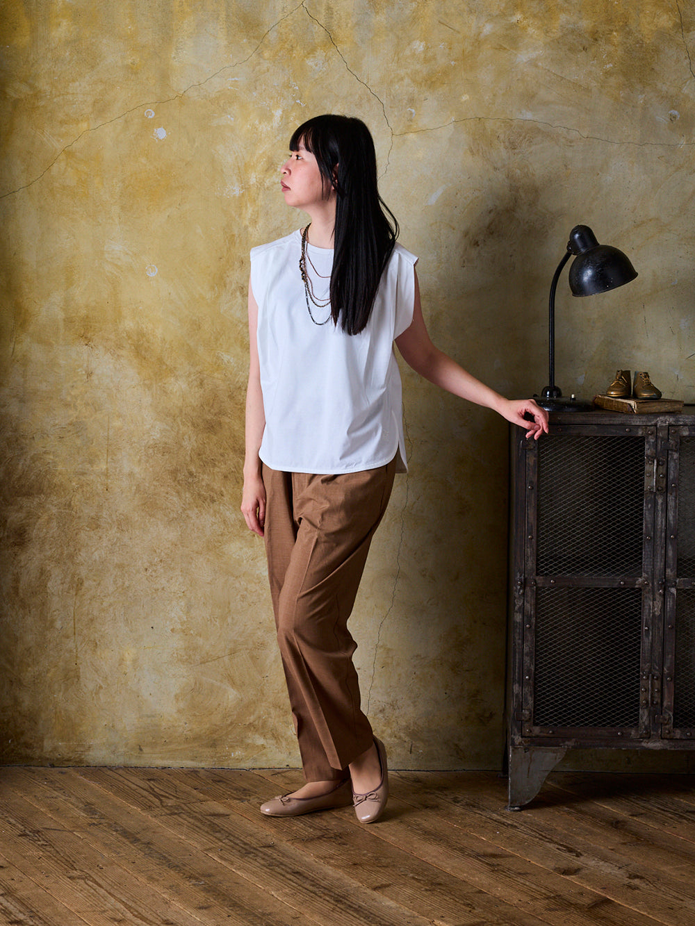 暑い夏にぴったりのノースリーブ。ヨーク部分にプリーツを入れ、立体感を出すことで二の腕が見えにくくシャープな印象に。ノースリーブに抵抗がある方にもおすすめのデザインです。