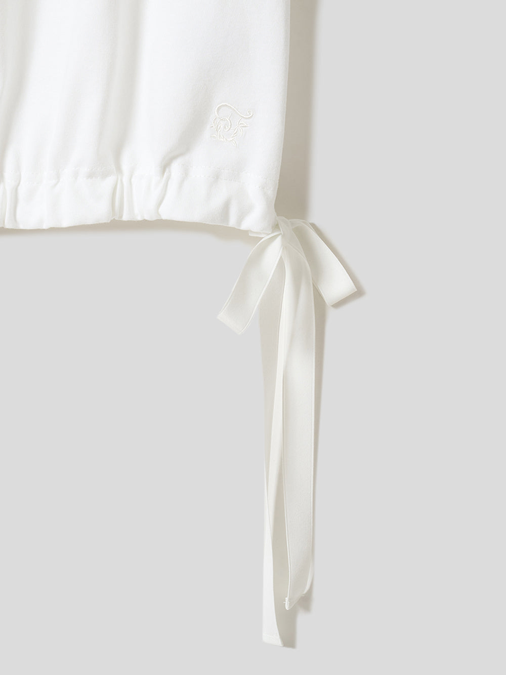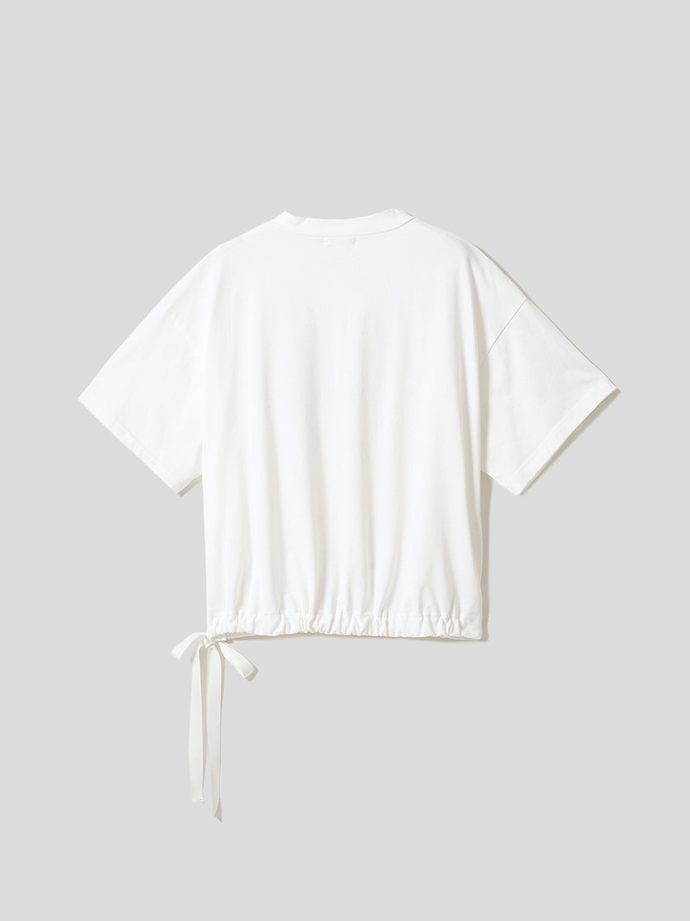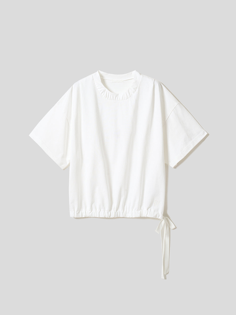 タック、ギャザー、サテンリボンが織りなす、1枚でお洒落が完成する白T
