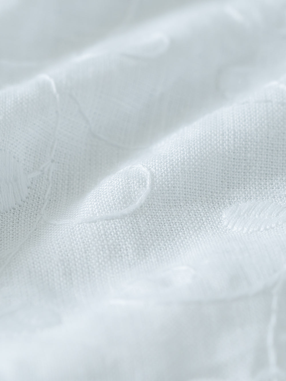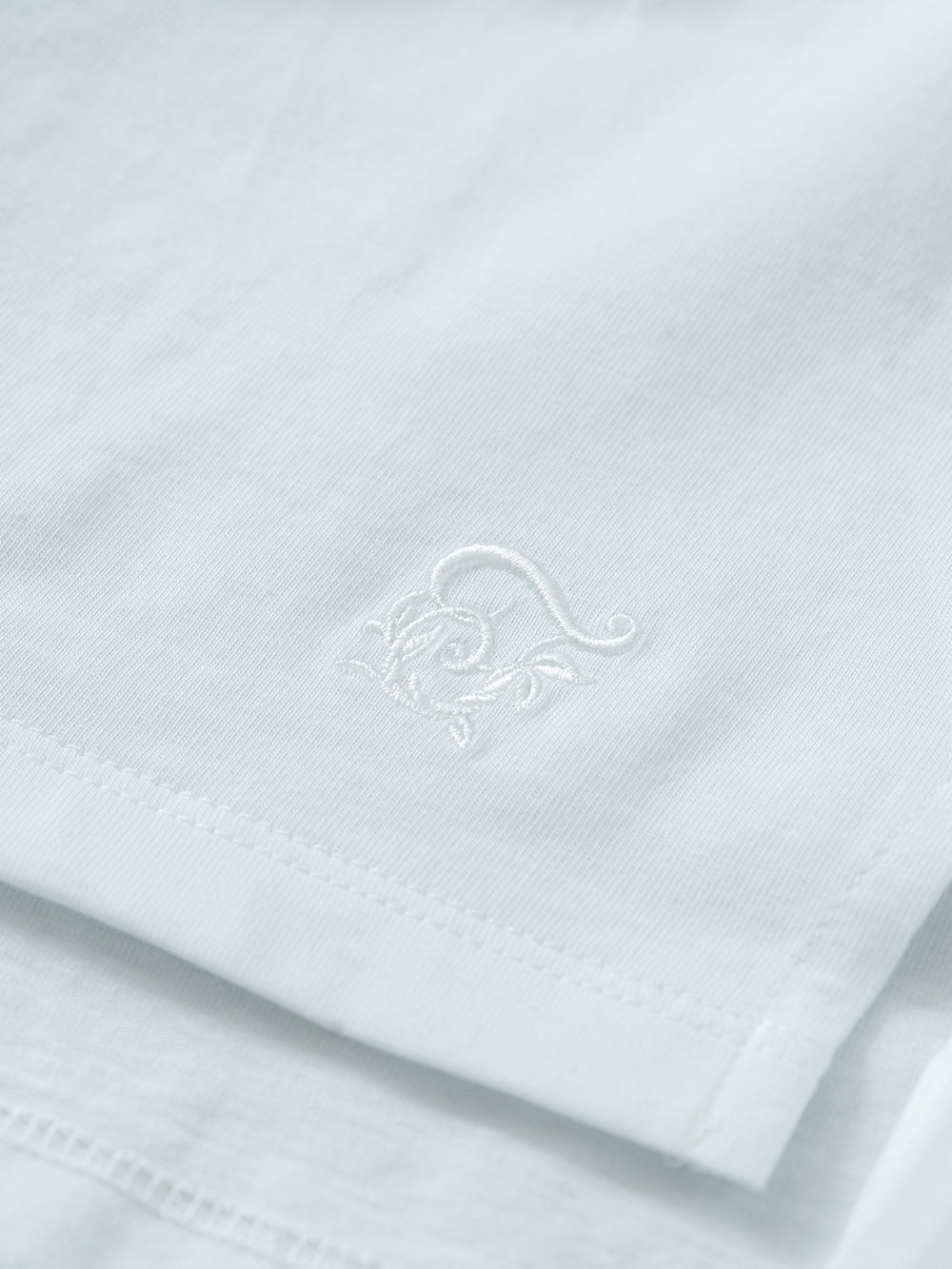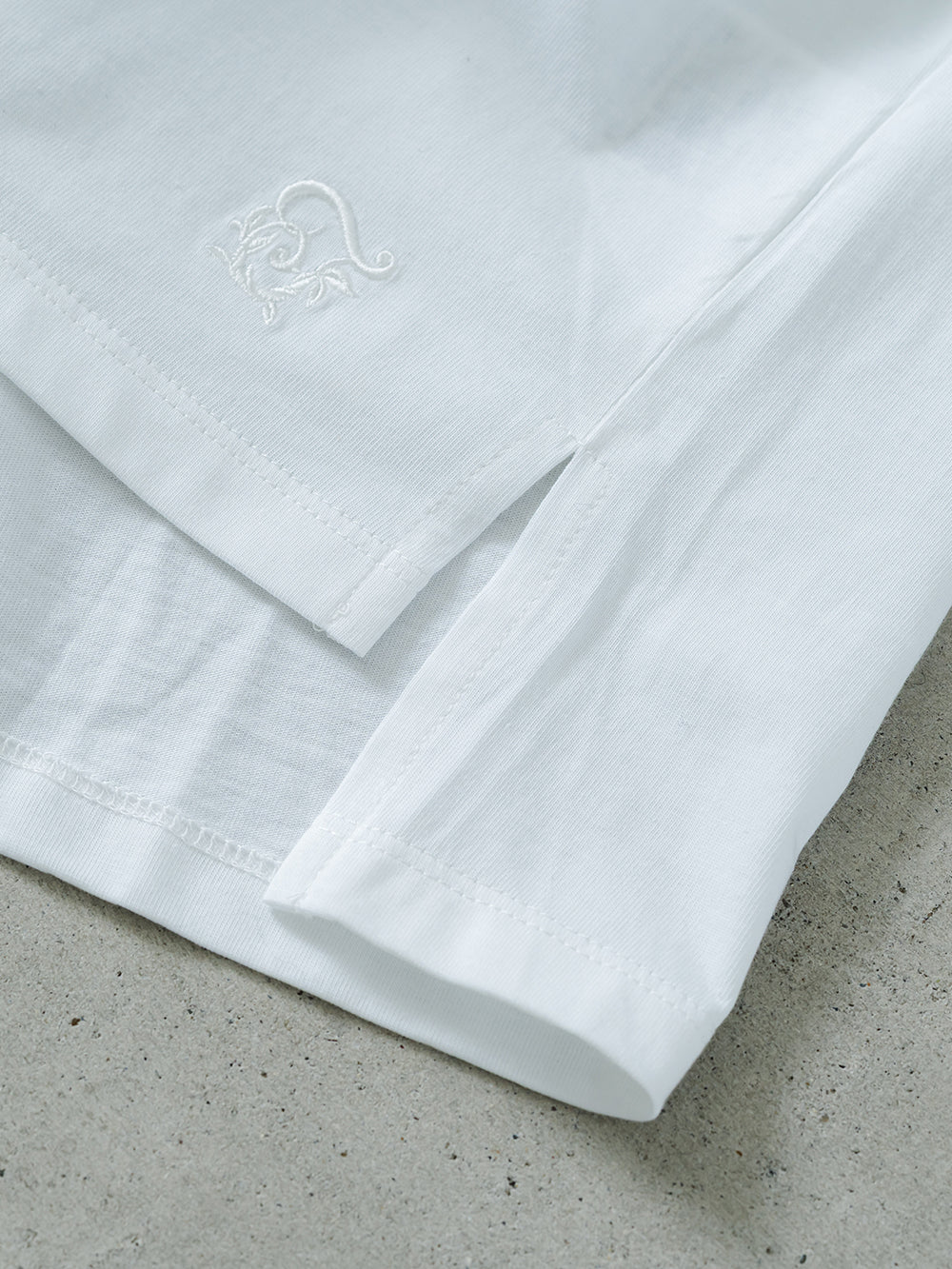 本体はインドの超長綿を47/2番手でサイロ紡績した雪崩式サイトプレミアム天竺を使用。毛羽立ちしにくく、さらっとした生地で洗濯耐久性にも優れています。きれいめでありながらもナチュラルな風合いに仕上げた素材です。レースには麻100%のヘンプ エンブロイダリーを採用。