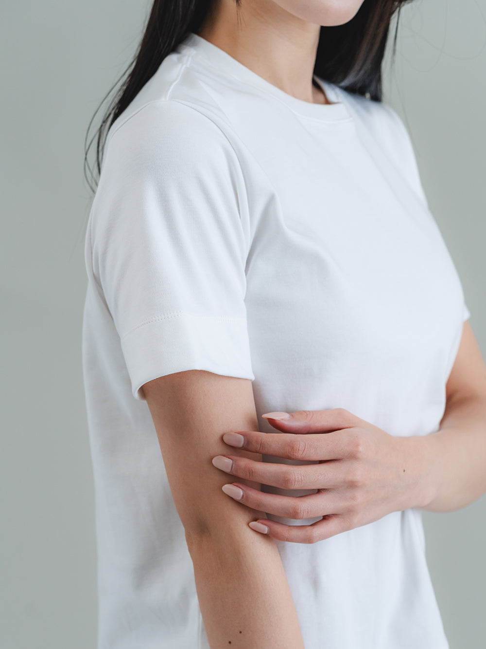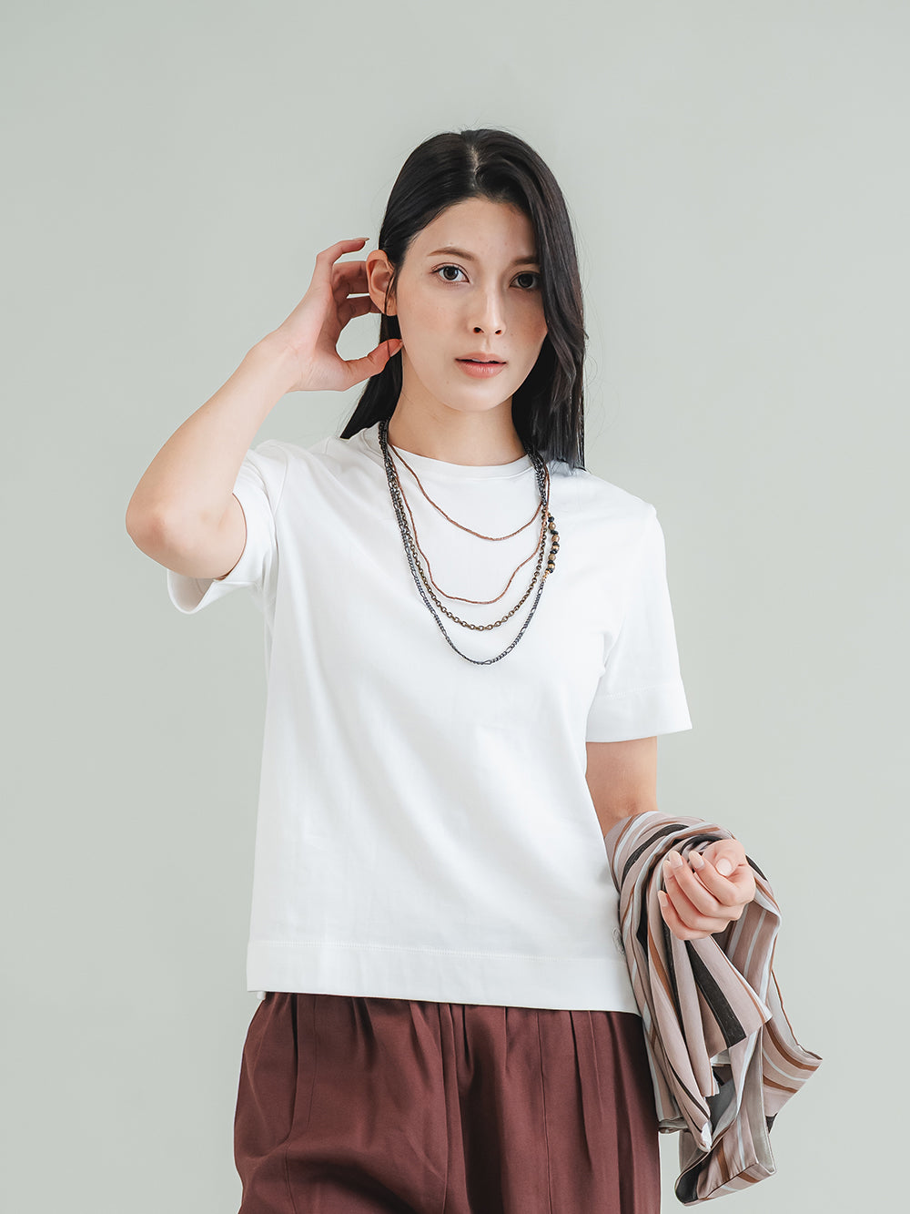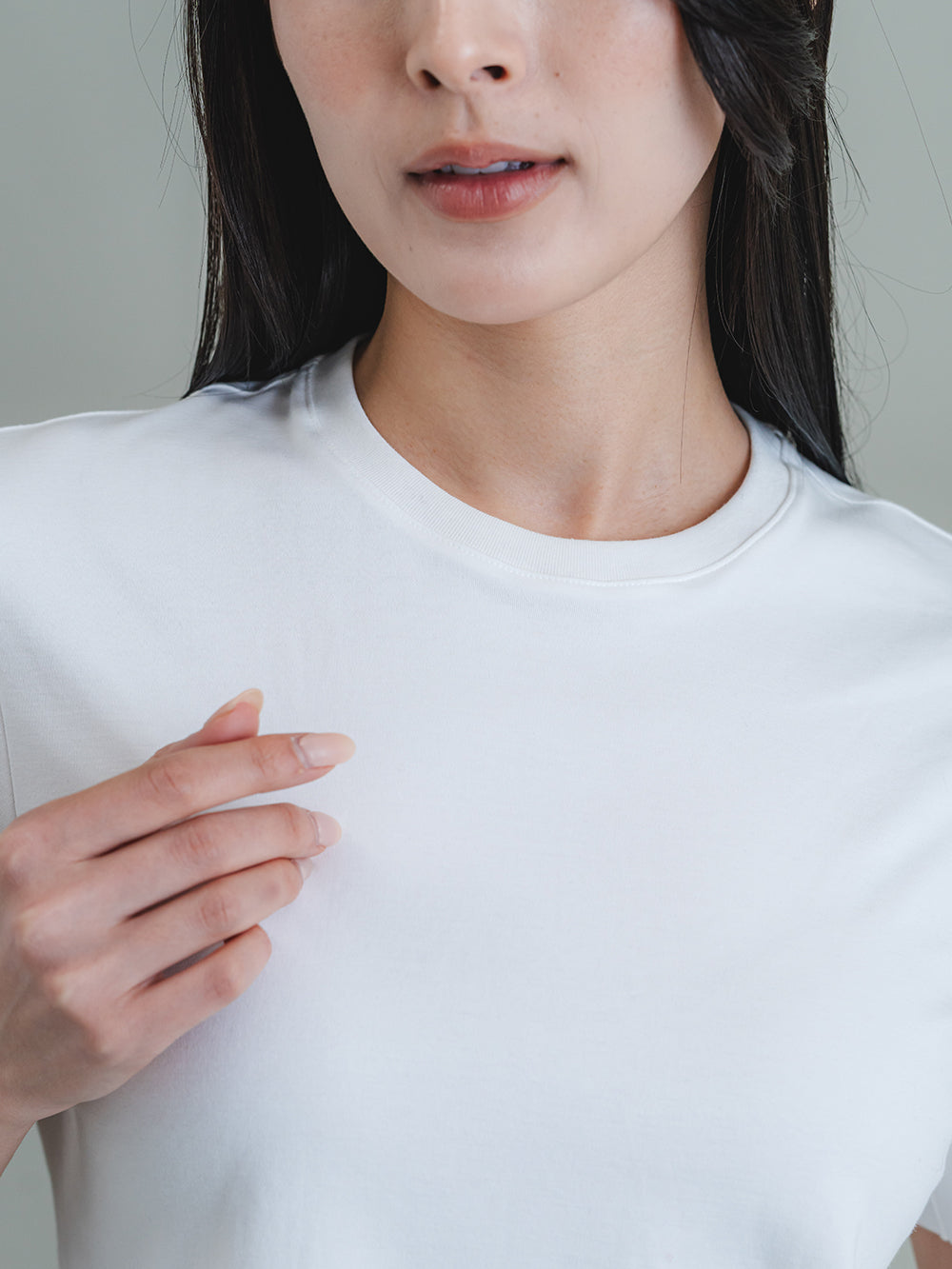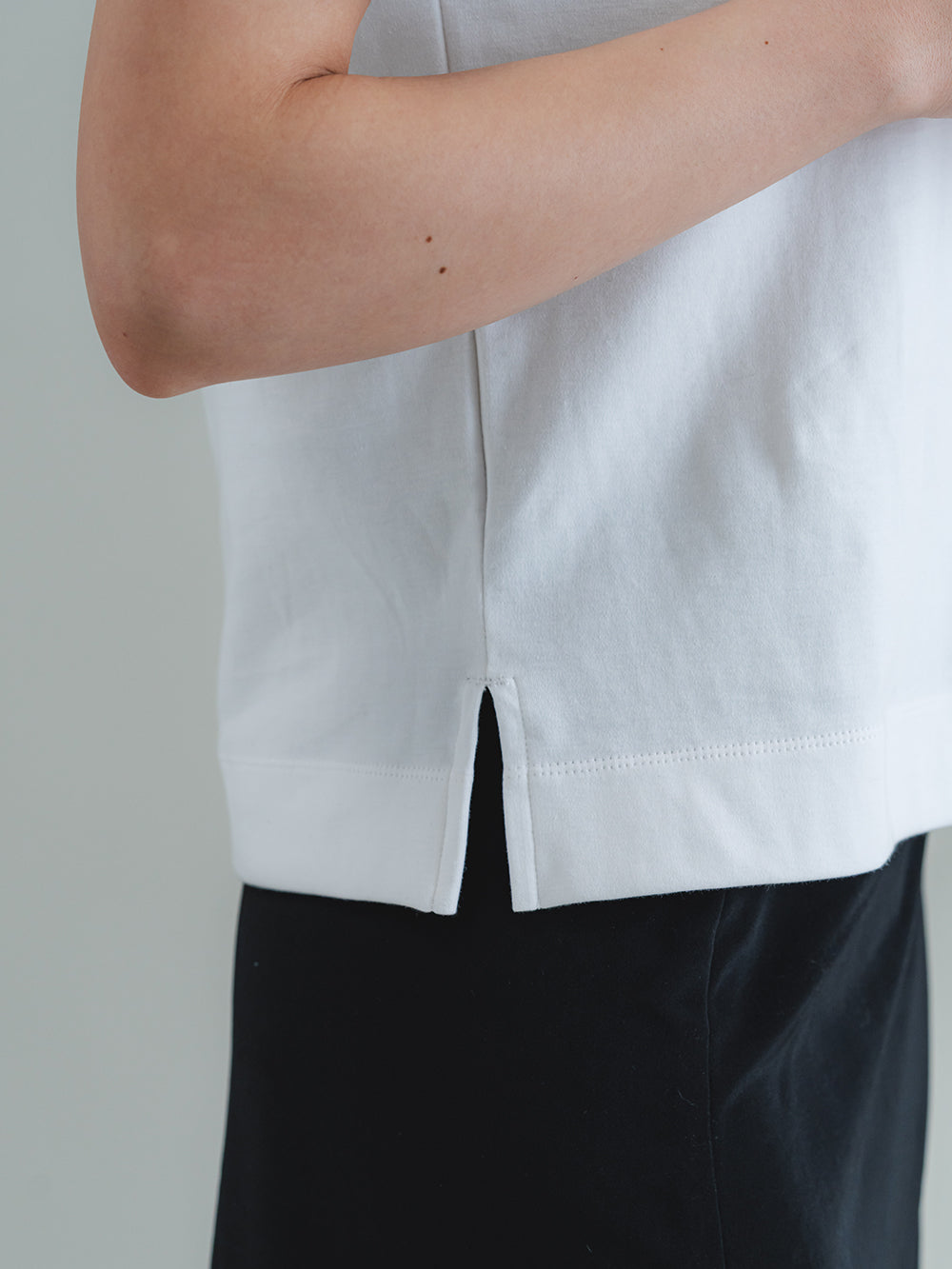 幻のコットンと言われるシーアイランドコットンとインド原産のスジャータ綿を掛け合わせたスビンコットン。その最高峰、ファーストピック(初摘み)のみが名乗れる「スビンプラチナム」を使用。やわらかく、なめらかな着心地のスムース編み生地です。